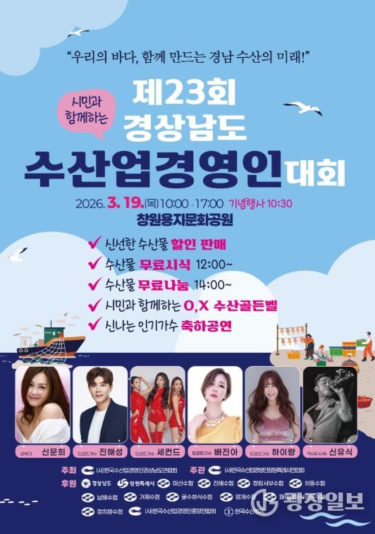 사단법인 한국수산업경영인 경상남도연합회가 주최하고 창원특례시연합회가 주관하는 이번 대회는 “우리의 바다, 함께 만드는 경남 수산의 미래!”라는 주제로 열린다.