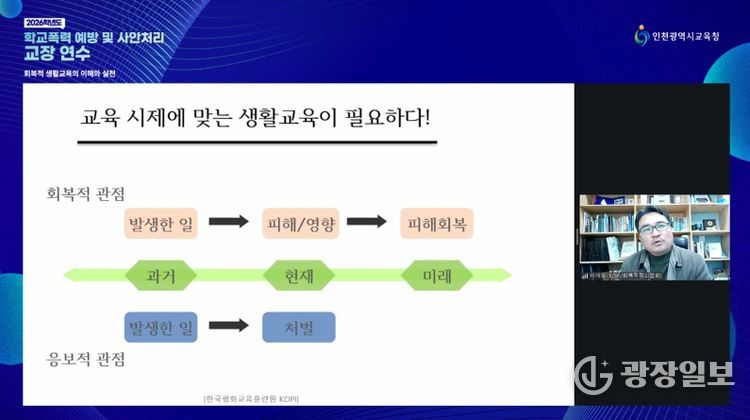 인천시교육청 관계자는 “학교폭력 예방을 위해서는 학교 구성원 모두의 공감과 협력이 필요하다”며 “이번 연수가 학교 현장의 갈등을 교육적으로 해결하고 관계 회복 중심의 학교문화가 정착되는 계기가 되길 기대한다”고 말했다.