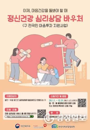 광장일보 주재영 기자 | 인천 동구는 우울·불안 등 정서적 어려움을 겪는 구민의 마음건강을 돌보기 위해 ‘정신건강 심리상담 바우처’ 지원사업을 추진한다고 밝혔다.