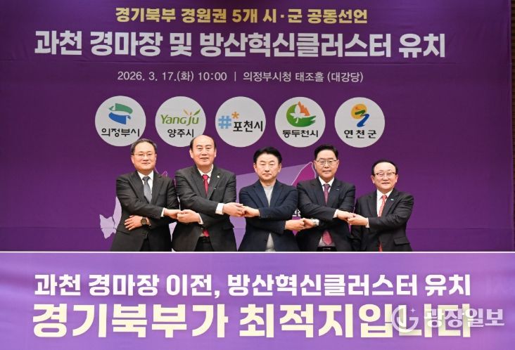광장일보 주재영 기자 | 양주시는 17일 의정부시청 대강당에서 의정부·포천·동두천시·연천군과 함께 ‘과천경마공원 이전 및 방산혁신클러스터 경기북부 유치’를 위한 공동 선언문을 발표했다.