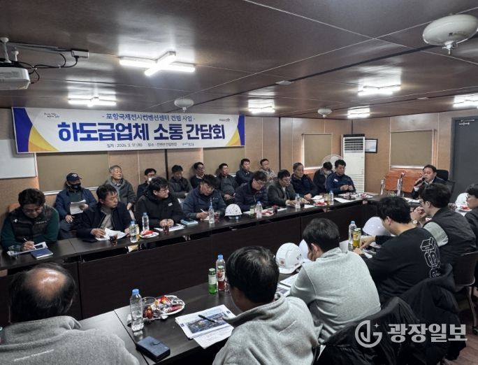 광장일보 주재영 기자 | 포항시는 17일 포항 국제전시컨벤션센터(POEX) 건립 현장사무실에서 시공사 및 하도급업체 관계자들과 함께 '건립공사 소통 간담회'를 개최했다.