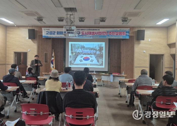 광장일보 주재영 기자 | 고성군은 3월 17일 회화면사무소에서 배둔지구 주민협의체 회원 및 주민 40여 명을 모시고 2026년 공모 예정인 배둔지구 도시재생사업 주민설명회를 가졌다.