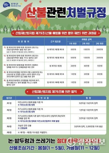 반승영 군 산림보호팀장은 “아무리 작은 불씨라도 건조한 날씨와 강풍을 만나면 걷잡을 수 없는 대형 산불로 번질 수 있다”며 “과실이나 실수로 발생한 산불도 명백한 범죄 행위가 될 수 있는 만큼, 군민들께서는 산림 인접 지역에서 절대 불을 피우지 말아 달라”고 당부했다.