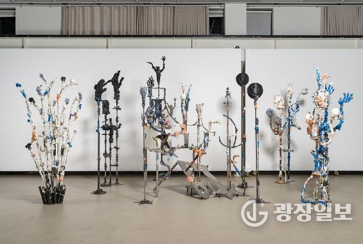 관람객은 작품에 앉거나 머물며 이미지와 물질, 조각과 사용의 경계를 경험할 수 있다. 높이 약 3미터의 대형 수직 조각 〈디지털 꼬치〉(2026)는 디지털 이미지를 덩어리 형태로 쌓아 올린 구조로 제작된 작업이다.