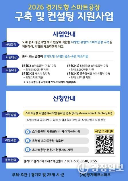 광장일보 박균현 기자 | 수원특례시가 경기도와 함께 ‘2026년 경기도형 스마트공장 구축 및 컨설팅 지원사업’ 참여 기업을 공모한다. 경기도 22개 시군 소재 중소제조기업을 지원하는데, 수원시 기업은 4개사를 선정할 예정이다.