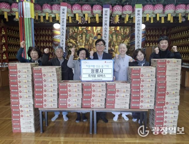 광장일보 주재영 기자 | 가평 청룡사는 최근 지역의 소외된 이웃들에게 도움이 되길 바라는 마음으로 청평면 행정복지센터에 즉석밥 60박스를 기탁했다.