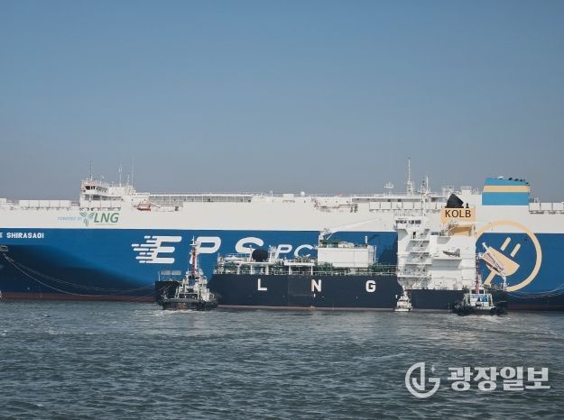 광장일보 박균현 기자 | 경기평택항만공사는 18일 평택국제자동차부두에서 개항 이래 최초로 대형 자동차운반선에 1,290톤(Metric Ton) 규모의 친환경 액화천연가스(LNG)를 성공적으로 급유했다고 밝혔다. 이번 첫 시범 운영 성공으로 평택항은 본격적인 상업용 친환경 선박 연료 공급(벙커링) 기반을 마련하며 국제 항만 경쟁력을 한층 끌어올렸다.