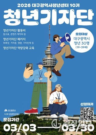 광장일보 주재영 기자 | 대구광역시는 지역 청년정책과 청년 활동의 현장을 청년의 시각에서 취재하고 전달할 ‘제10기 청년기자단’을 오는 3월 30일까지 모집한다.