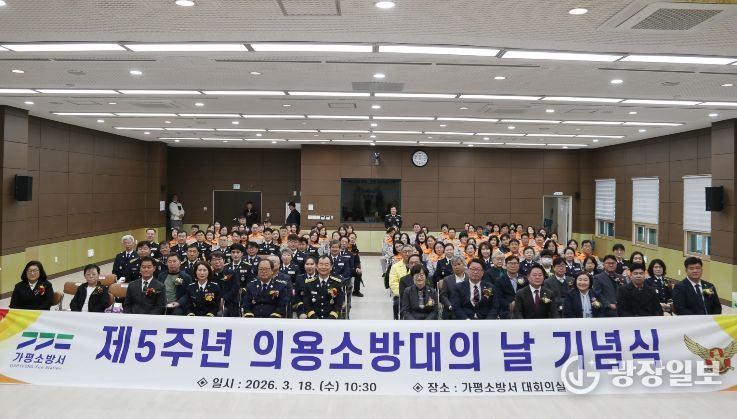 광장일보 주재영 기자 | 가평소방서는 18일 3층 대강당에서 지역사회 안전을 위해 헌신해 온 의용소방대의 노고를 기리고 사기를 진작하기 위한 ‘제5주년 의용소방대의 날 기념행사’를 개최했다고 밝혔다.