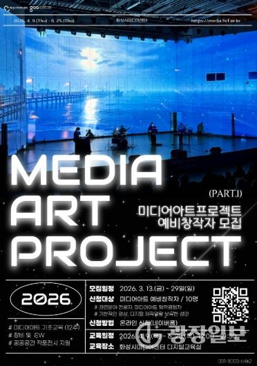 광장일보 나병석 기자 | 화성시문화관광재단 운영 화성시미디어센터는 지역 기반 미디어아트 창작 생태계 구축과 네트워크 형성을 위해 ‘2026 공공 공간 미디어아트 프로젝트(Media Art Project, MAP)’ 상반기 트랙 참여자를 오는 3월 29일까지 모집한다.