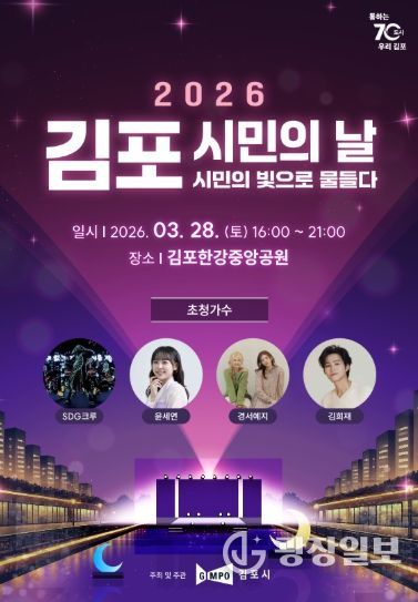광장일보 주재영 기자 | 김포시는 오는 3월 28일 김포한강중앙공원에서 ‘2026년 김포시민의 날 기념행사’를 개최한다고 밝혔다. 이번 행사는 김포시 시승격일(4월 1일)을 기념해 시민의 화합과 자긍심을 높이고, 시의 발전을 함께 기념하기 위해 마련됐다.