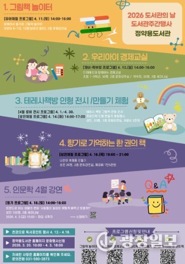 광장일보 주재영 기자 | 남양주시는 ‘2026년 도서관의 날·도서관주간’을 맞아 정약용도서관에서 4월 한 달간 전시와 체험, 강연 등 다양한 독서문화 프로그램을 운영한다고 18일 밝혔다.