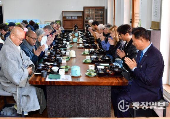 광장일보 주재영 기자 | 장성군이 ‘프랑스마스터셰프협회(MCF)’ 요리사 200여 명이 최근 ‘전남 미식 팸투어’ 프로그램의 일환으로 백양사 사찰음식을 체험했다고 전했다.