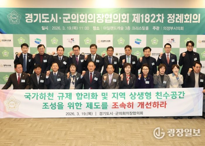 광장일보 주재영 기자 | 경기도시군의회의장협의회 회장인 동두천시의회 김승호 의장이 제안한 '국가하천 규제 합리화 및 지역 상생형 친수공간 조성을 위한 제도 개선 촉구 건의안'이 19일 의정부 아일랜드캐슬에서 열린 제182차 정례회의에서 만장일치로 채택됐다.