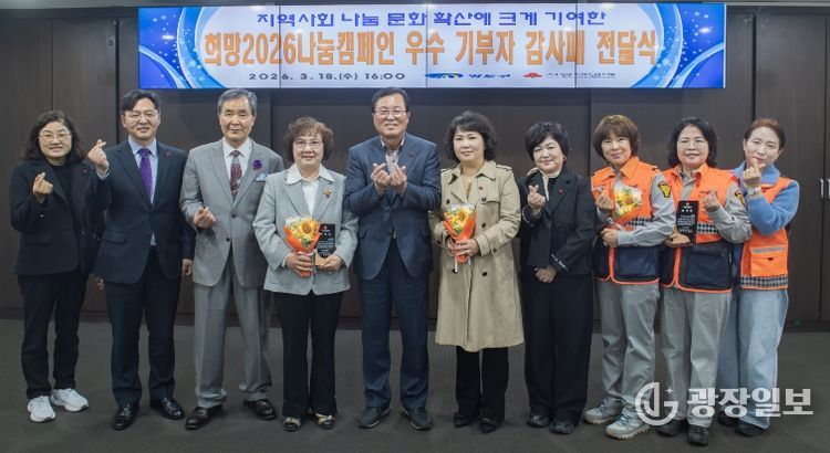 광장일보 주재영 기자 | 부산 영도구는 부산사회복지공동모금회(회장 이수태)와 공동으로 지난 3월 18일, 구청 대회의실에서 '희망2026 나눔캠페인 우수기부자 감사패 전달식을 개최했다고 밝혔다.