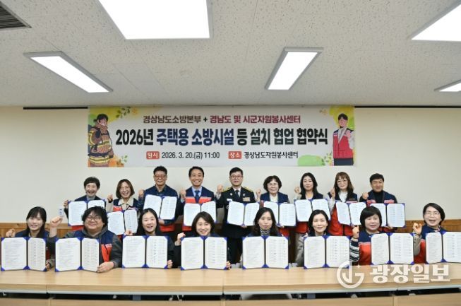 광장일보 주재영 기자 | 경상남도 소방본부는 20일 오전 11시 경상남도자원봉사센터와 도내 18개 시군 자원봉사센터가 참여한 가운데 주택용 소방시설 보급 협력을 위한 업무협약을 체결했다고 밝혔다.