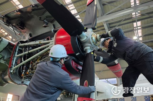 정비는 2월 12일부터 2월 28일까지 김포항공대 격납고에서 진행됐으며, 신품 프로펠러 조립과 기존 장비 탈거, 장착, 진동 수정 작업, 시험비행 등 일련의 정비 과정을 거쳐 최종적으로 정상 운용을 확인했다.