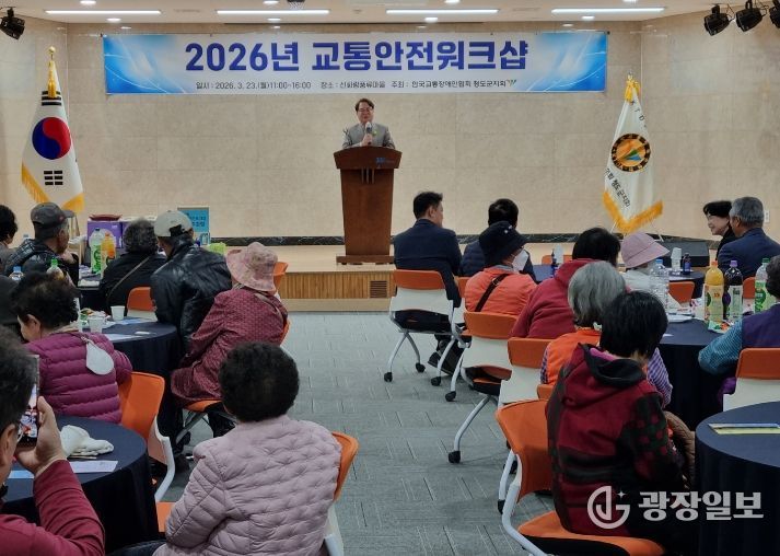 광장일보 주재영 기자 | 청도군은 지난 23일 청도신화랑풍류마을에서 사)한국교통장애인협회 청도군지회(지회장 이승찬) 주최로 회원 등 60여명이 참석한 가운데 『2026년 교통안전워크숍』을 개최했다고 밝혔다.