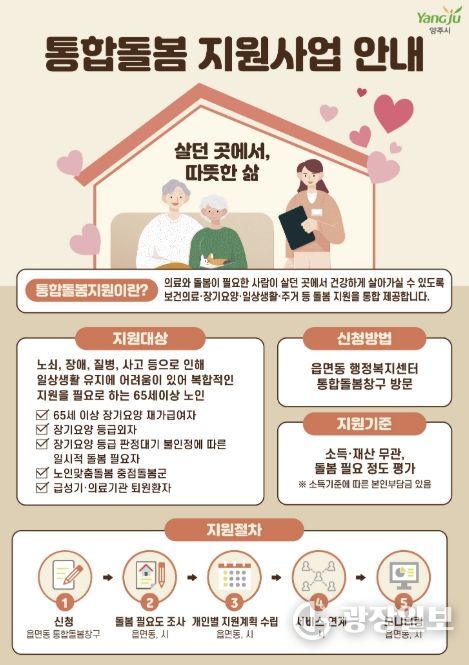 광장일보 주재영 기자 | 양주시가 오는 3월 27일 ‘돌봄통합지원법’의 전국 시행에 맞춰 양주형 통합돌봄 모델인 ‘온(溫)케어’ 서비스를 본격적으로 운영한다.