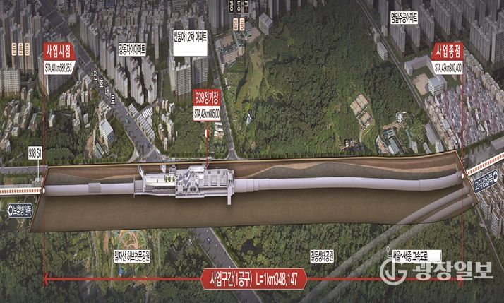 또 터널 굴착 시 주변 지반, 외력 하중에 최대한 견딜 수 있는 보강공법을 적용한 보완설계도 완료했다. 지반 변형을 억제하고 구조적 안정성을 높이기 위해 터널 주변 지반에 구멍 뚫린 강관을 매설하고 그 내부에 고결제를 주입, 흙을 단단하게 하고 지반 안정성을 높여주는 ‘강관보강 그라우팅’ 시공할 계획이다.