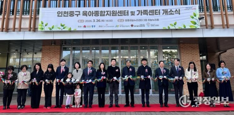 광장일보 주재영 기자 | 인천시 중구는 지난 26일 영종하늘누리센터에서 ‘중구가족센터’와 ‘육아종합지원센터’의 공동 개소식을 개최하고 본격적인 운영에 나섰다.
