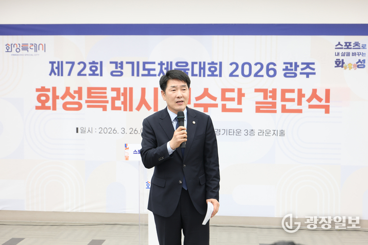 광장일보= 나병석기자 | 화성특례시의회가 제72회 경기도체육대회에 출전하는 화성시 선수단의 결단식에 참석해 선수들을 격려했다.