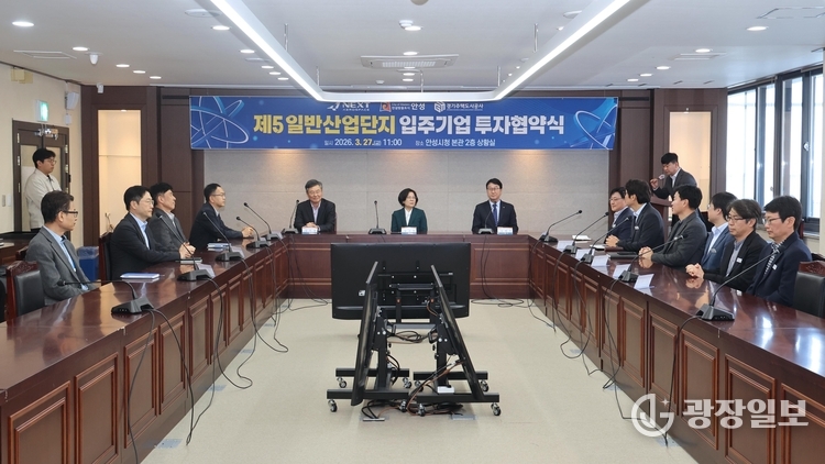 안성시=주재영 기자 | 안성시가 2026년 3월 27일 ㈜넥스트에어로스페이스와 제5 일반산업단지 입주기업 투자유치 양해각서(MOU)를 체결했다.
