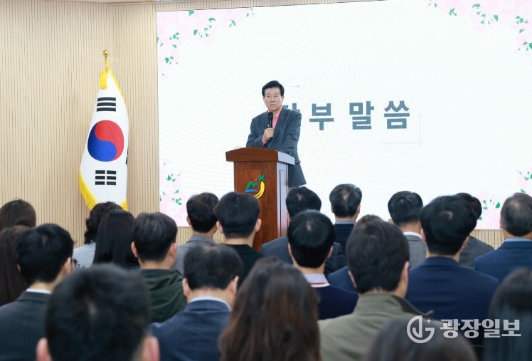 광장일보 나학천 기자 | 박범인 금산군수는 지난 1일 군청 다용도회의실에서 열린 간부회의에서 “꽃피는 춘삼월은 봄꽃이 만개하는 시기”라며 “꽃의 계절을 맞아 열리는 3색 꽃축제 개최 준비를 철저히 해달라”고 지시했다.
