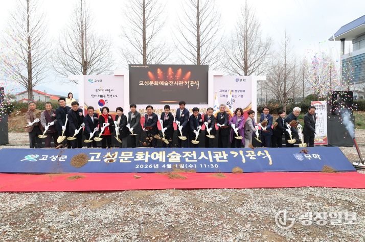 광장일보 주재영 기자 | 고성군과 무학그룹은 4월 1일, 고성읍 기월리 147-5일원에서 고성문화예술전시관 기공식을 성대히 개최하며 전시관 건립의 본격적인 시작을 알렸다.