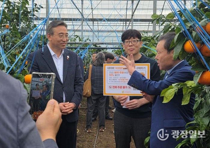 광장일보 나학천 기자 | 서귀포시는 4월 1일, 감귤박물관과 카라향 하우스 일원에서 4월 출하를 앞둔 서귀포산 카라향 홍보를 위해 황창연 신부 영상 촬영에 오순문 서귀포시장이 동반 출연해 카라향 등 만감류 소비 촉진을 호소했다.