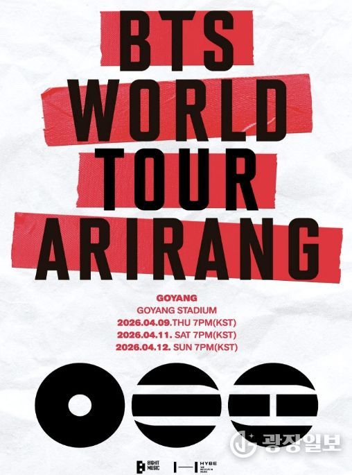 오는 4월 9일, 11일, 12일 3일간 고양종합운동장에서 ⌜BTS 월드투어 ‘아리랑’ 인 고양⌟이 개최된다. 광화문광장에서 열린 컴백쇼로 완전체 귀환을 알린 BTS가 본격적인 월드투어 대장정의 첫 무대를 고양시에서 선보인다. 공연은 3회차 전석 매진을 기록했으며 사흘간 약 12만 명 관람객이 방문할 것으로 예상된다.