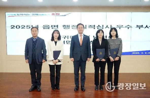 광장일보 이현나 기자 | 홍천군은 4월 2일 홍천군청 대회의실에서 2025년 읍면별 군정 주요 업무에 대한 행정 실적 심사 우수 읍면에 상장을 수여했다.
