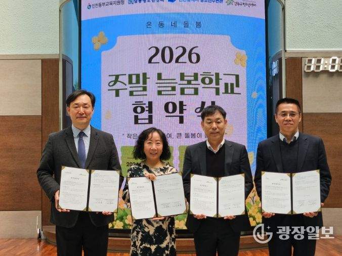 광장일보 주재영 기자 | 인천동부교육지원청은 지난 1일 남동청소년센터, 인천청소년수련관, 연수구청소년센터와 ‘동부 온동네’ 지역 연계 찾아가는 주말 늘봄학교 운영을 위한 업무협약을 체결했다.