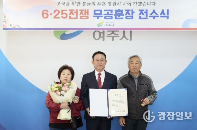 광장일보 주재영 기자 | 여주시는 지난 2일 6‧25전쟁 무공훈장 전수식을 개최하고, 故이석만 상사의 공적을 기리며 화랑무공훈장을 유가족에게 전수했다.