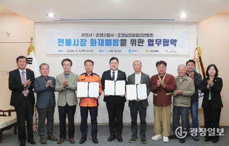 춘천시는 3일 시청 접견실에서 춘천소방서, (사)춘천상업경영인연합회와 전통시장 화재예방 업무협약을 체결했다.