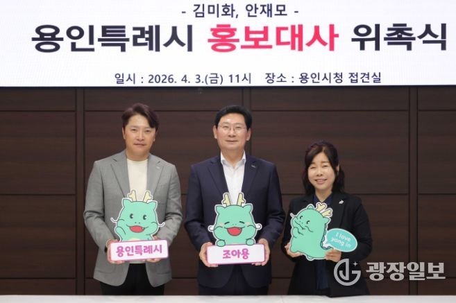 광장일보 주재영 기자 | 용인특례시는 3일 용인 시민인 방송인 김미화씨와 배우 안재모씨를 홍보대사로 위촉했다.