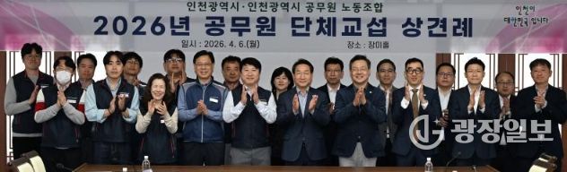 광장일보 주재영 기자 | 인천광역시는 4월 6일 시청 장미홀에서 인천시공무원노동조합, 전국공무원노동조합 인천지역본부 인천시지부와 ‘2026년도 단체교섭 체결을 위한 상견례’를 개최했다고 밝혔다.