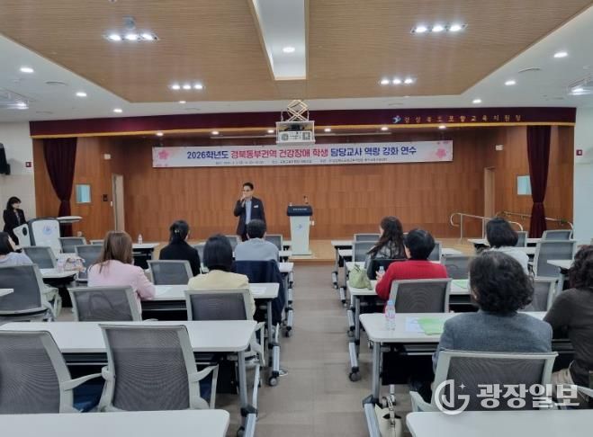 광장일보 주재영 기자 | 포항교육지원청은 2026년 4월 3일 포항교육지원청 5층 대회의실에서 경북동부권역(포항,영덕,울진,청송,울릉) 건강장애학생 담당교사 30여명을 대상으로 2026학년도 경북동부권역 건강장애학생 담당교사 역량강화 연수를 실시했다.