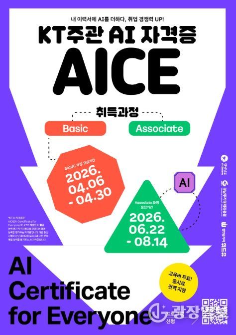 광장일보 주재영 기자 | 경남투자경제진흥원(원장 오재호)은 도내 청년들의 디지털 역량 강화와 취업 경쟁력 제고를 위해 AI 자격증 과정인 ‘KT AICE(AI Certificate for Everyone) 교육과정’을 운영한다고 밝혔다.