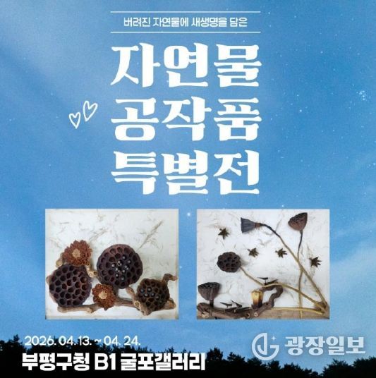 광장일보 주재영 기자 | 부평구는 오는 13일부터 24일까지 ‘자연물 공작품 특별전’을 구청 굴포갤러리에서 개최한다고 밝혔다.