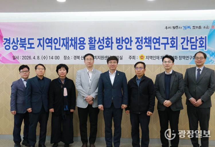 광장일보 주재영 기자 | 경상북도의회 '지역인재채용 활성화 정책 연구회'(대표 조용진 의원)는 4월 8일 경북 산학연 유치지원센터 회의실에서 ‘지역인재채용 활성화 정책연구회 간담회’를 개최했다.