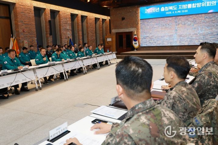 광장일보 이현나 기자 | 충북도는 9일 도청 대회의실에서 확고한 지역 안보망을 구축하고 통합방위태세를 굳건히 다지기 위한 ‘2026년 충청북도 지방통합방위회의’를 개최했다.
