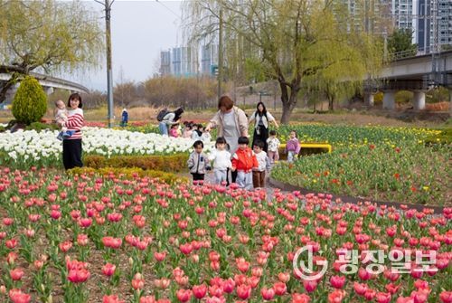 본부는 단순한 꽃 식재를 넘어 계절의 흐름에 따라 변화하는 경관을 시민들이 느낄 수 있도록 공간 연출에 중점을 두고 이번 튤립단지를 조성했다.