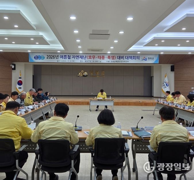 광장일보 주재영 기자 | 영광군은 4월 9일 14시 군청 3층 대회의실에서 23개 실단과소, 유관기관(영광경찰서, 영광소방서, 제8332-2대대, 한국농어촌공사 영광지사) 및 자율방재단이 참석한 가운데 '2026년 여름철 자연재난 사전대비 관계기관 대책회의'를 개최했다.