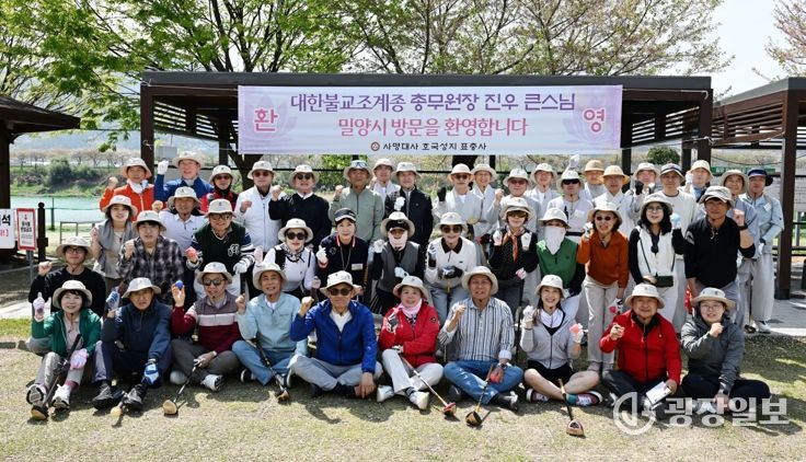 광장일보 주재영 기자 | 경남 밀양시는 11일 대한불교조계종 총무원장 진우 스님을 비롯해 전국 교구 본사 주지스님, 중앙신도회 관계자 40여 명이 밀양을 방문해 오는 10월 개최 예정인 ‘제2회 대한불교조계종 총무원장배 파크골프대회’를 앞두고 시범라운딩을 가졌다고 밝혔다.