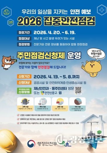 광장일보 이현나 기자 | 속초시는 2026년 집중안전점검 기간을 맞아 4월 13일부터 5월 8일까지 주민점검 신청제를 운영하며 신청을 받는다.