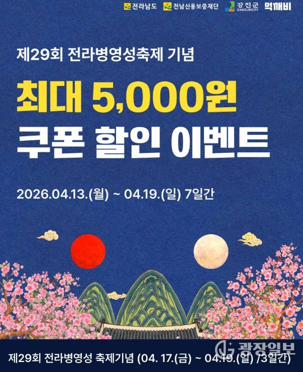 광장일보 주재영 기자 | 강진군이 ‘제29회 전라병영성축제’를 맞아 오는 13일부터 19일까지 7일간 공공배달앱 ‘먹깨비’ 이용자를 대상으로 파격적인 할인 이벤트를 추진한다.