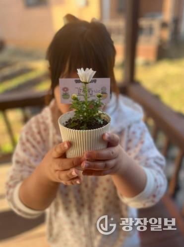 아이들은 “감사합니다”, “고맙습니다”, “건강하세요”, “힘내세요” 등의 문구를 직접 작성한 작은 피켓을 화분에 담았고, 경비원‧선생님‧어르신 등 주변 감사한 분들에게 화분을 전달했다.
