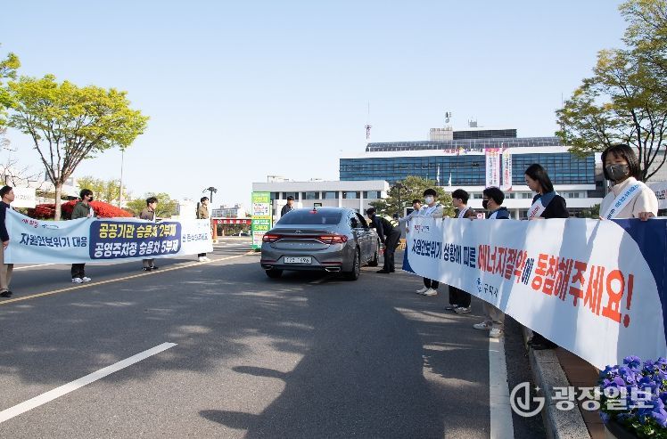 광장일보 주재영 기자 | 구미시는 13일 오전 8시 30분 시청 입구에서 출근길 직원과 시민들을 대상으로 에너지 절약 실천을 위한 ‘공공기관 승용차 2부제 및 공영주차장 5부제’ 동참 캠페인을 펼쳤다.
