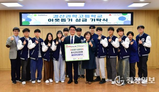 광장일보 주재영 기자 | 경산과학고등학교(교장 전용희)는 10일 경산시청을 방문하여 지역 내 어려운 이웃을 돕기 위한 이웃돕기 성금 421만 원을 기탁했다.